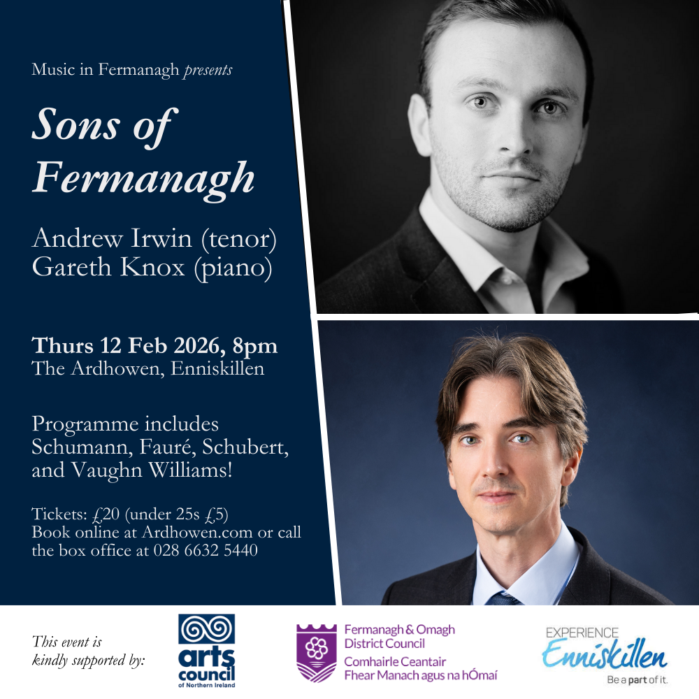 Music in Fermanagh is supported by the Arts Council of Northern Ireland, Fermanagh & Omagh District Council, Enniskillen BID and many private sponsors.